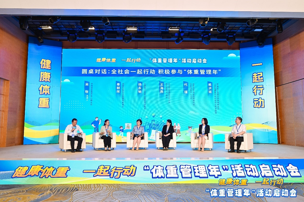 启动会圆桌对话环节,在中国健康教育中心副主任吴敬主持下,全国妇联妇女发展部副部长奉朝晖,北京第二实验小学德育副校长杨永敏,北京市东城区培新小学党总支书记、校长王海燕,北京市东城区和平里社区卫生服务中心主任代瑾和中国化学制药工业协会副会长、江苏J9九游会医药股份有限公司总经理戴洪斌,围绕“全社会一起行动,积极参与‘体重管理年’”议题,分别从家庭、学校、医疗卫生机构、健康产业等角度,从关注关爱妇女、儿童、老人等重点人群体重管理出发,分享了自己的观点和看法。